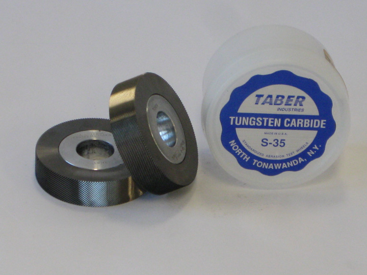 S-35磨輪 -Taber S-35 磨輪由碳化鎢制成,S-35的外圍擁有尖銳的螺旋齒 ,結合切割和撕裂作用,提供非常嚴重的磨損效果。 僅適用于橡膠,油氈和皮革等彈性材料。 可以使用軟黃銅毛刷清潔S-35磨輪。