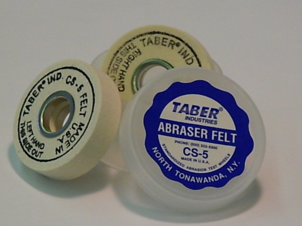 CS-5 毛氈磨輪 - CS-5 毛氈磨輪由密實的羊毛氈制成。 設計用于250或500克負載的測試, 主要用于評估纖維材料之間的摩擦。