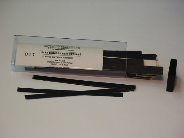 S-33 砂紙 - S-33砂紙由超細氧化鋁砂粒組成,分級為360 FEPA,平均粒徑約為40.5μm(0.00159英寸)。為了保持磨損率,必須在規定數量的測試循環(通常為200或500)之后更換砂紙條。 常用于玻璃和瓷釉,油漆,金屬涂料和家具表面的磨耗測試。